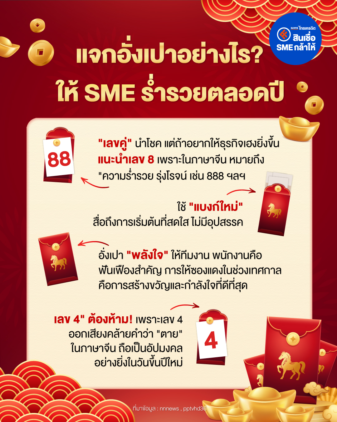 ถึงเทศกาลตรุษจีนทีไร นอกจากจะไหว้เจ้าขอพรแล้ว การ "ให้" อั่งเปาก็เป็นอีกหนึ่งเคล็ดลับสำคัญที่เชื่อว่าจะช่วยให้ธุรกิจไหลลื่นและมั่นคง วันนี้ ธนาคารไทยเครดิต รวบรวมทริกการใส่ซองที่ไม่ได้ให้แค่ความโชคดี แต่ยังได้ใจคนรอบข้างและเสริมสภาพคล่องให้ธุรกิจมาฝากกัน