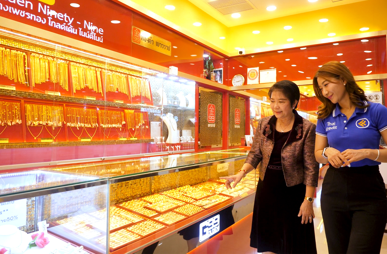 คุณสมใจ : สำหรับสินเชื่อนี้มีความสำคัญมาก โดยเฉพาะช่วงนี้ราคาทองเปลี่ยนแปลงสูงขึ้นเยอะ ไม่ว่าจะเป็นธุรกรรมต่างๆ ไม่ว่าจะเป็นรับซื้อ เราก็ต้องใช้เงิน ไม่ว่าจะเป็นขายฝาก เราก็ต้องใช้เงิน เพราะฉะนั้น ธุรกิจนี้มีการดำเนินไปได้ก็ต้องมีสินเชื่อ สำหรับธนาคารไทยเครดิตไม่ว่าจะเป็นด้านไหน ทางธนาคารไทยเครดิตก็สนับสนุนมาตลอด โดยเฉพาะหลังๆ เราเปิดสาขาใหม่ สาขาหนึ่ง ต้องใช้เงินไม่ต่ำกว่า 40 ล้านบาท ทางธนาคารไทยเครดิตก็ช่วยเหลือ ไม่ว่าจะเป็นการทำเอกสาร ไม่ว่าจะเป็นการแนะนำ ธนาคารไทยเครดิตบริการได้ดีมาก ที่สำคัญคือรวดเร็ว และเข้าใจธุรกิจของร้านทองอย่างยิ่ง สุดท้ายนี้ก็ต้องขอบพระคุณ ธนาคารไทยเครดิตที่ให้การสนับสนุน ในด้านการเงินแล้วก็บริการต่างๆ ของร้านทอง ก็ขอขอบคุณเป็นอย่างยิ่งค่ะ