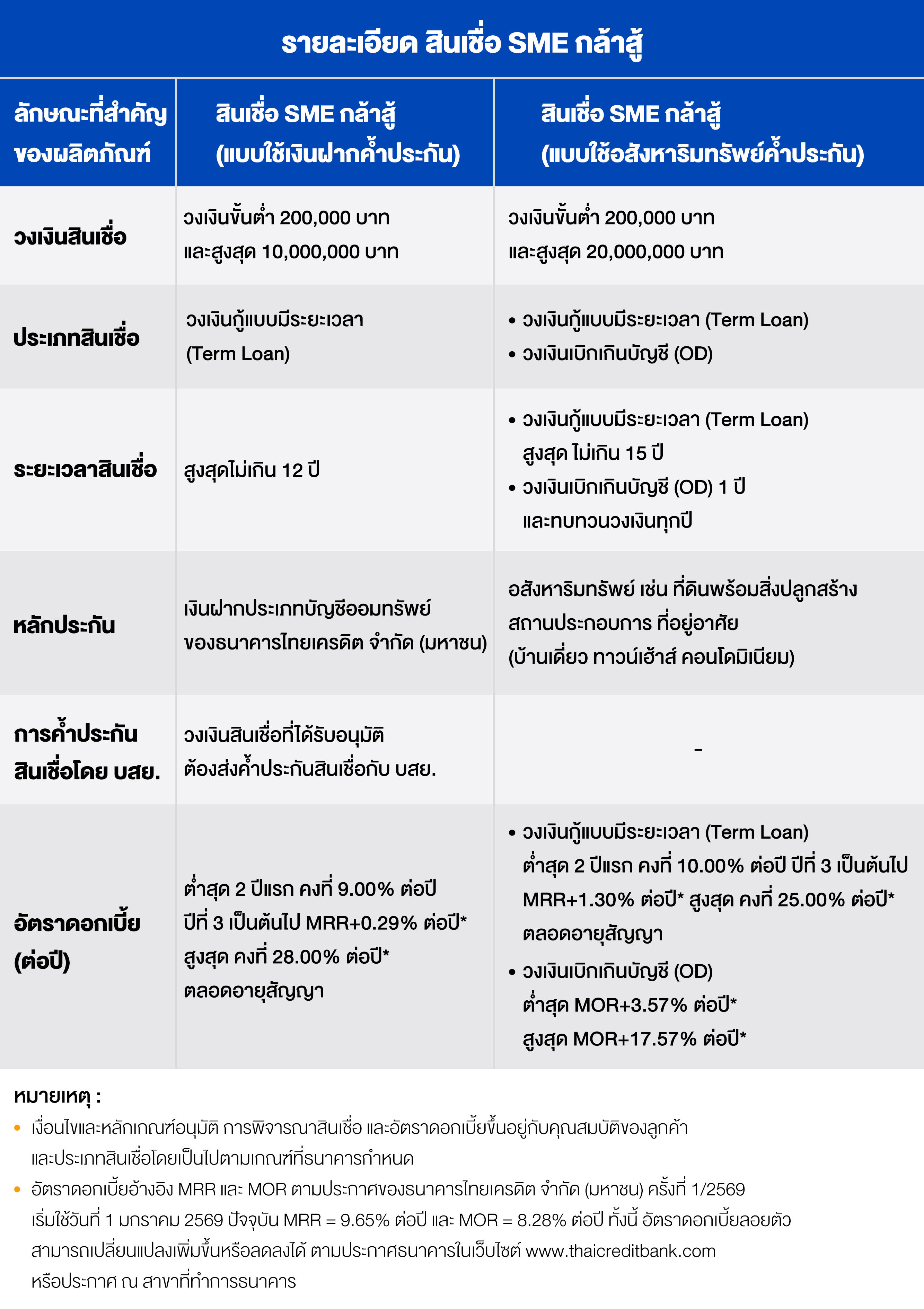 ข้อมูลผลิตภัณฑ์สินเชื่อเพื่อธุรกิจ Micro SME ธนาคารไทยเครดิต จำกัด (มหาชน) (Product Catalog) (เริ่มใช้วันที่ 1 ม.ค. 69) |