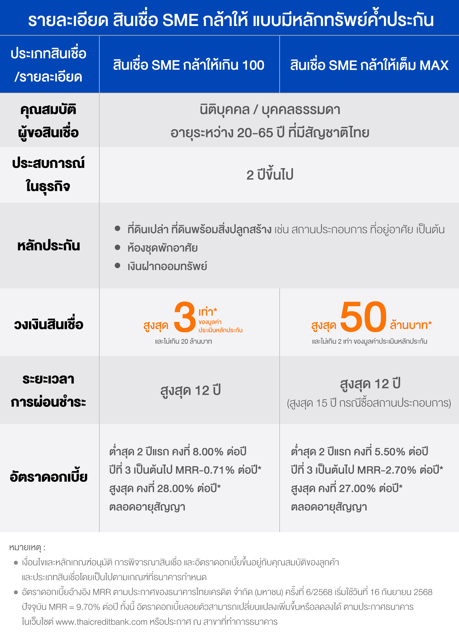 ข้อมูลผลิตภัณฑ์สินเชื่อเพื่อธุรกิจ Micro SME ธนาคารไทยเครดิต จำกัด (มหาชน) (Product Catalog) (เริ่มใช้วันที่ 3 ธ.ค.68) |