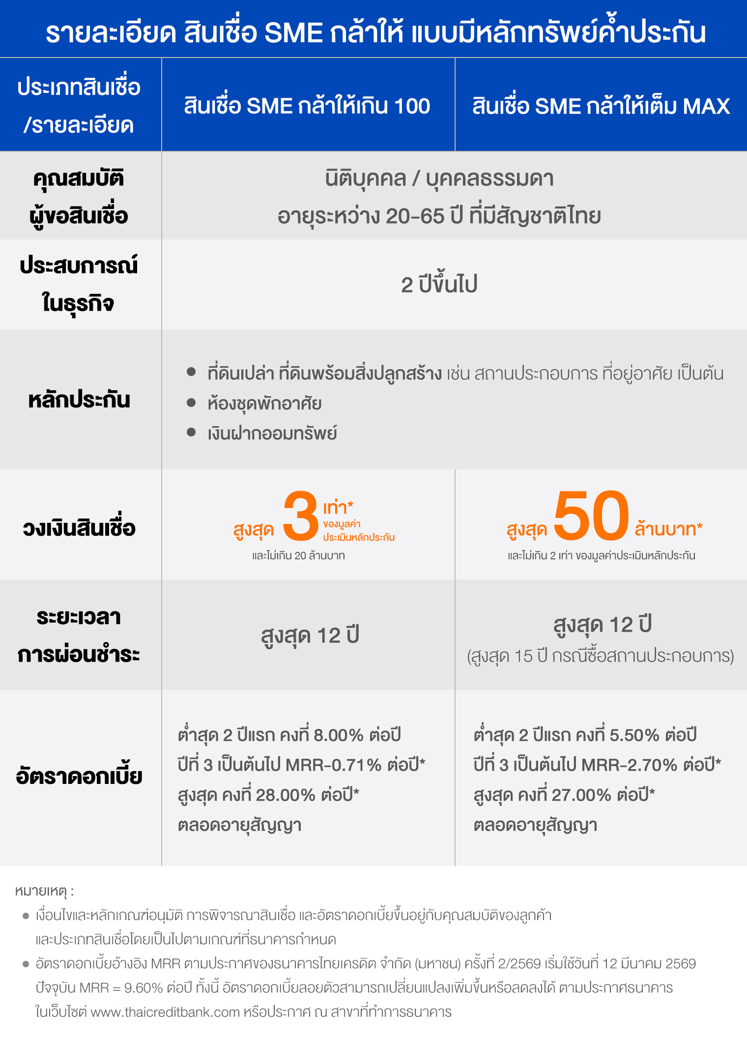 ข้อมูลผลิตภัณฑ์สินเชื่อเพื่อธุรกิจ Micro SME ธนาคารไทยเครดิต จำกัด (มหาชน) (Product Catalog) (เริ่มใช้วันที่ 12 มี.ค. 69) |