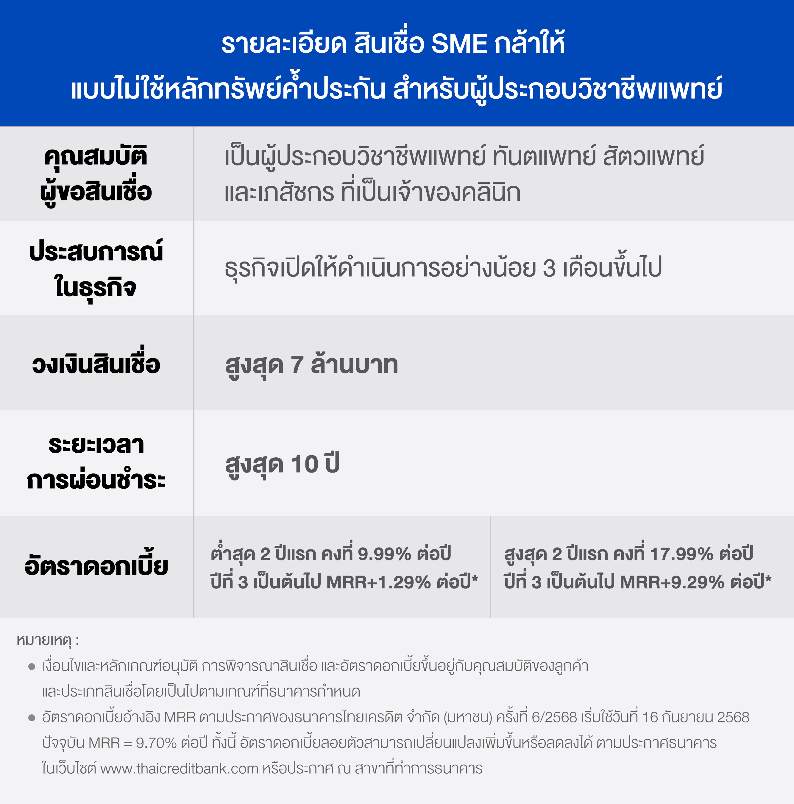 ข้อมูลผลิตภัณฑ์สินเชื่อเพื่อธุรกิจ Micro SME ธนาคารไทยเครดิต จำกัด (มหาชน) (Product Catalog) (เริ่มใช้วันที่ 17 ต.ค. 68) |